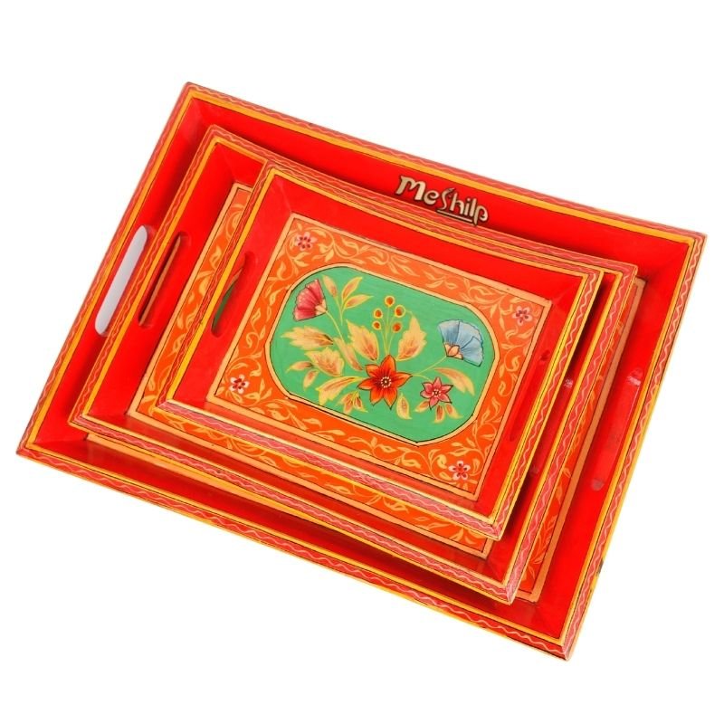 Meshilp Mango Wood four Corner three Serving Tray